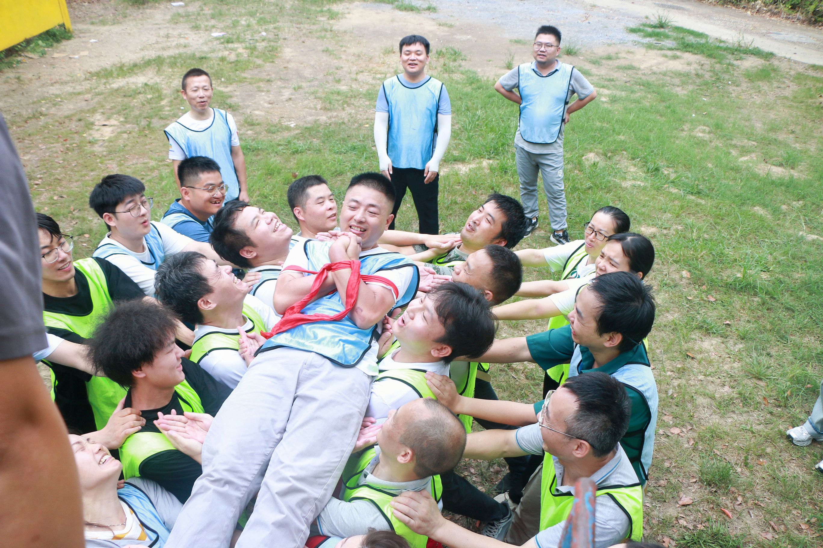 在团队合作的默契配合下,我们一起克服重重困难,相信同事,成功取到指定位置的水瓶。