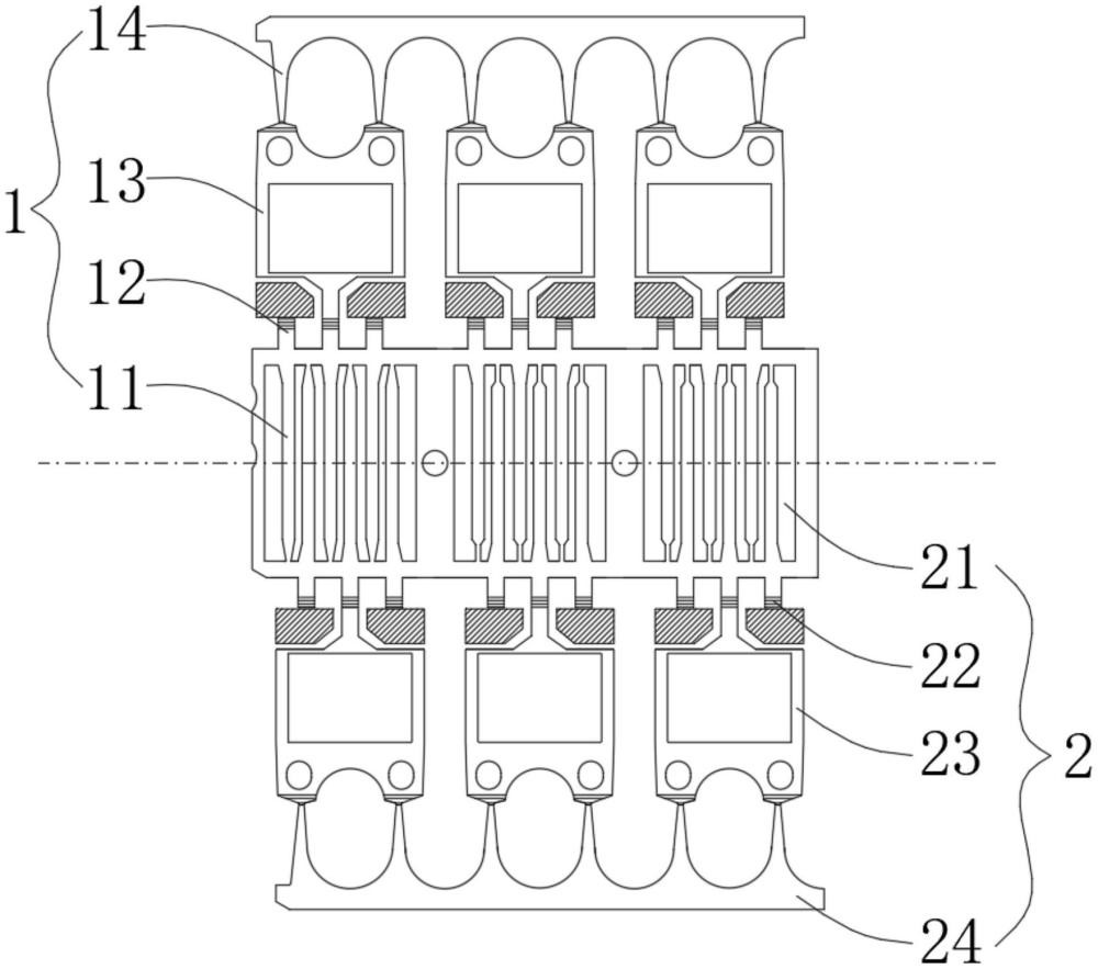 上连筋包括与第一载芯板连接的多根连接部以及将多根连接部串连的固定部。